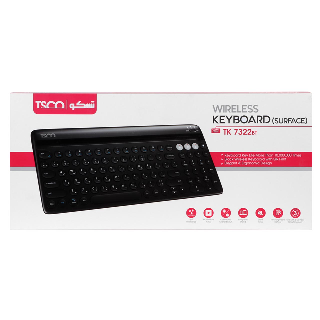 کیبورد بی سیم TSCO مدل TK 7322BT - مشکی