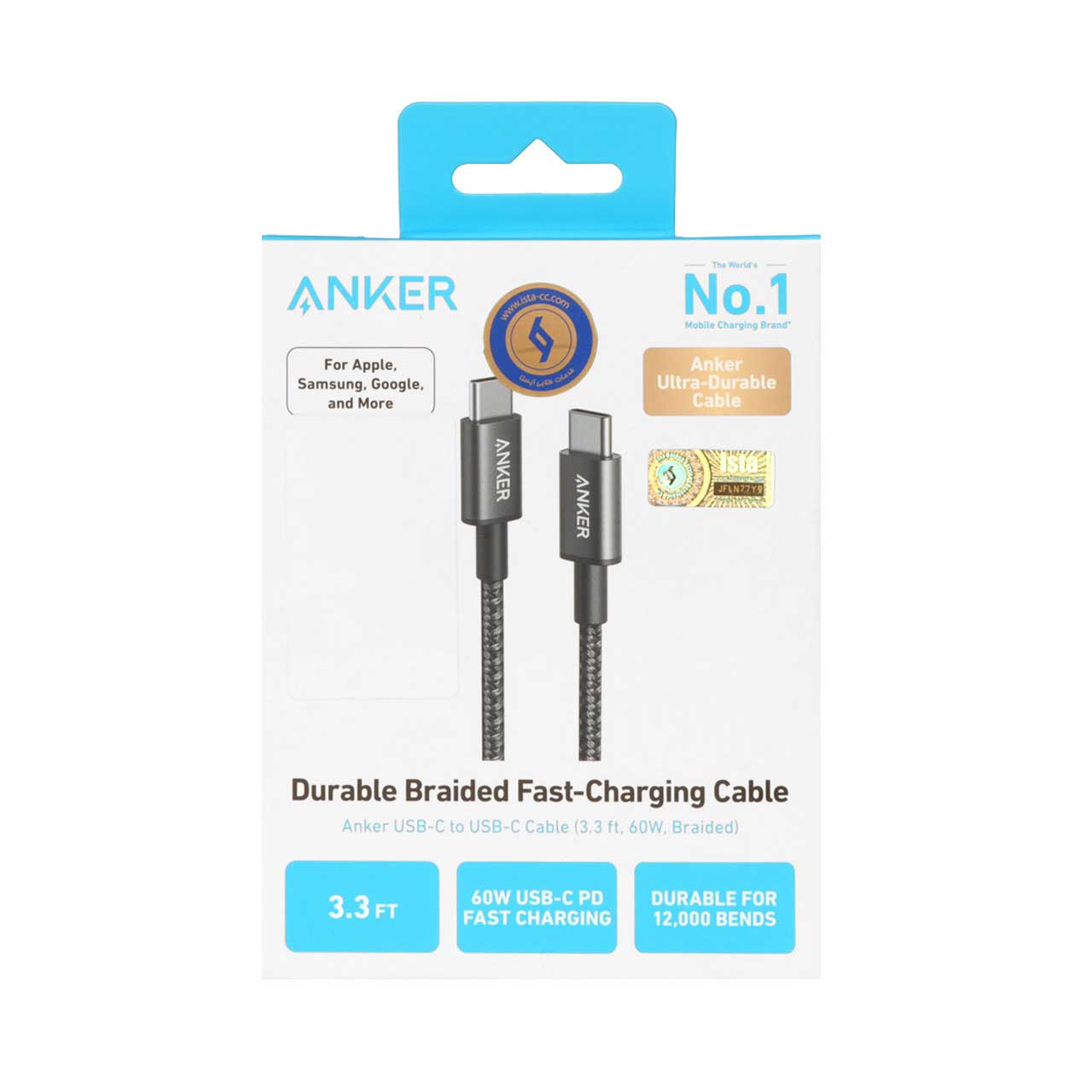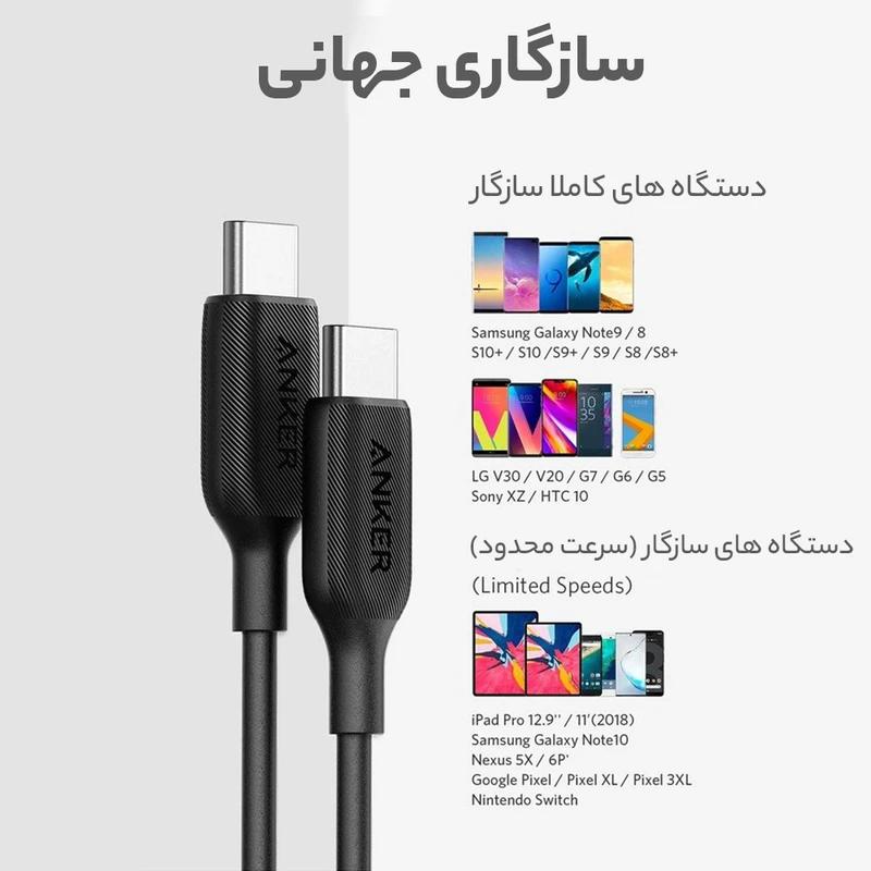 کابل شارژ فست ANKER Type-C to Type-C مدل A8752H11 - مشکی (گارانتی 18ماهه حافظه طلایی ایستا)