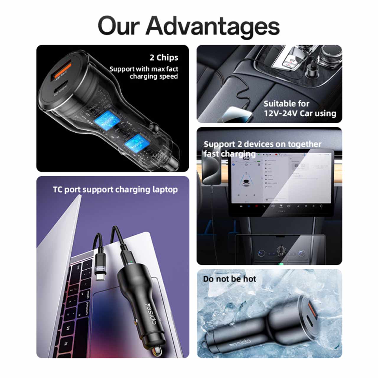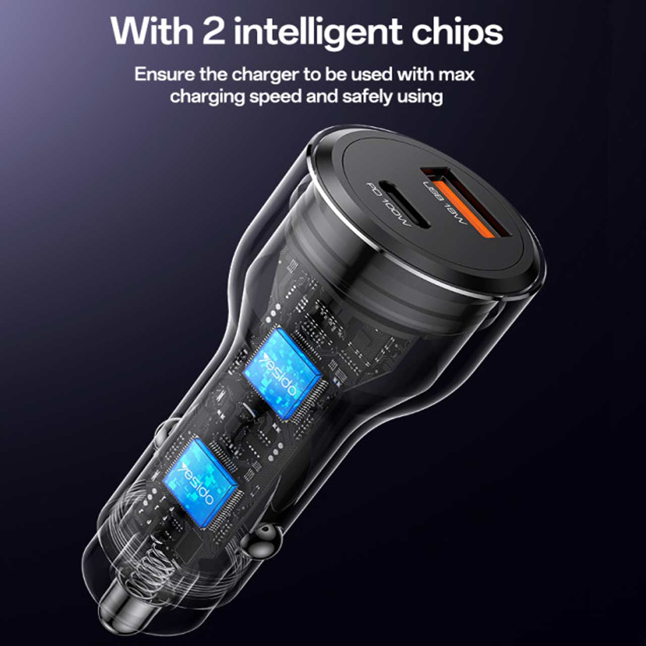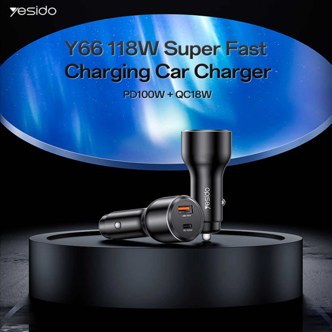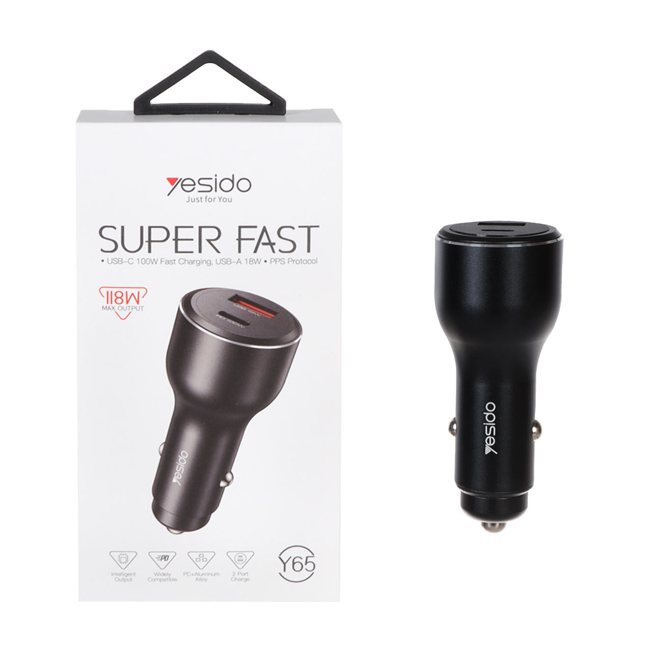 شارژر فندکی PD و فست دو پورت Yesido مدل Y65 118W - مشکی