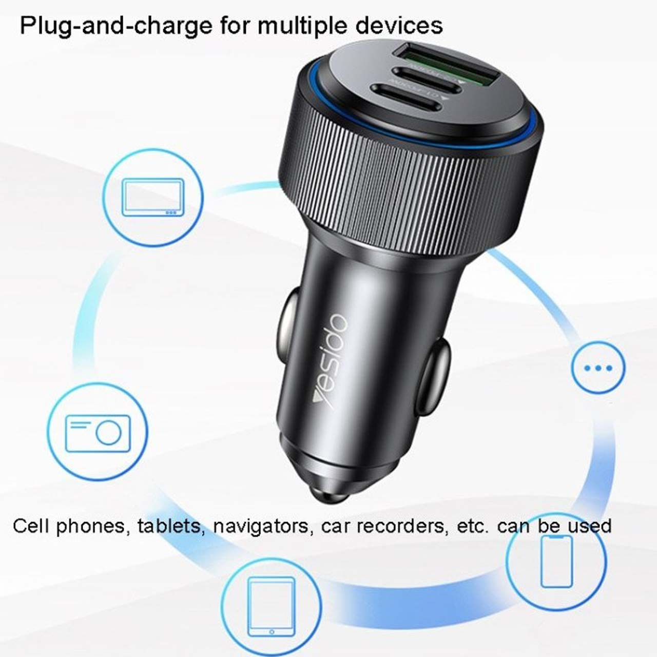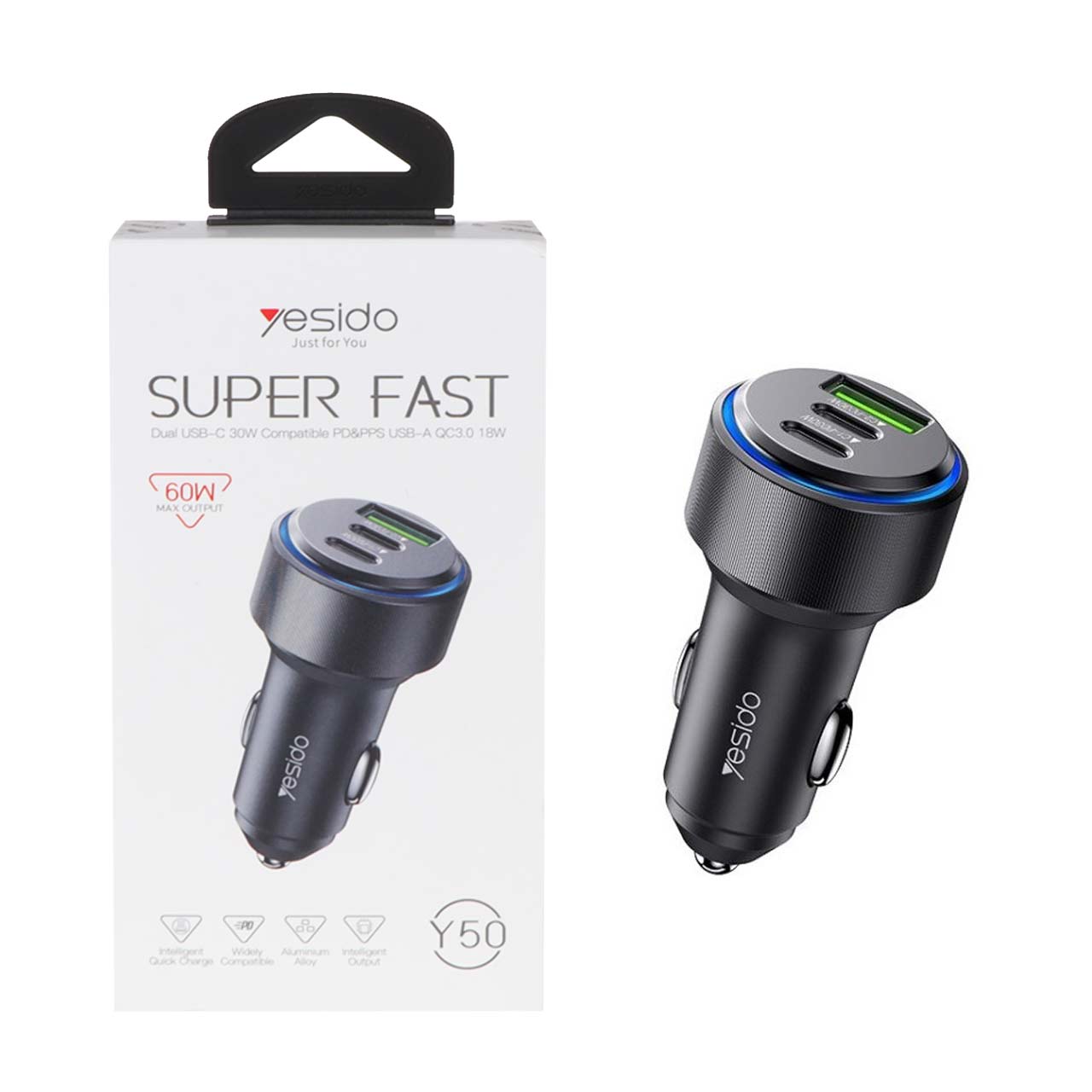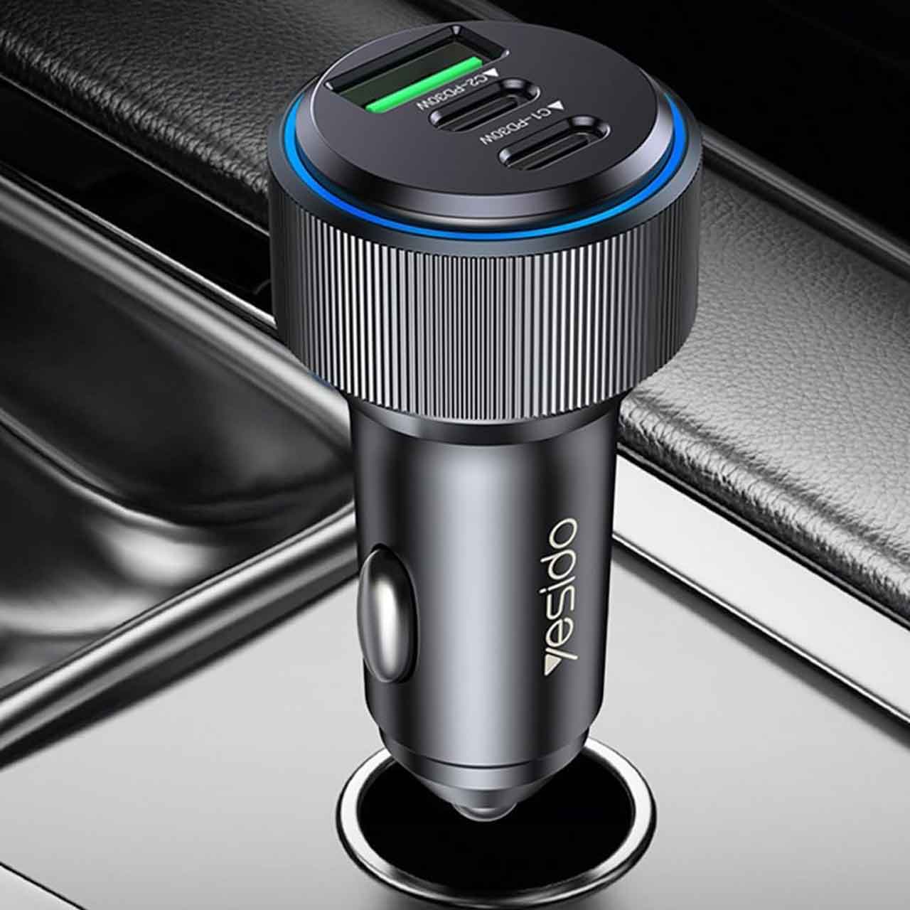 شارژر فندکی PD و فست سه پورت Yesido مدل Y50 60W - مشکی