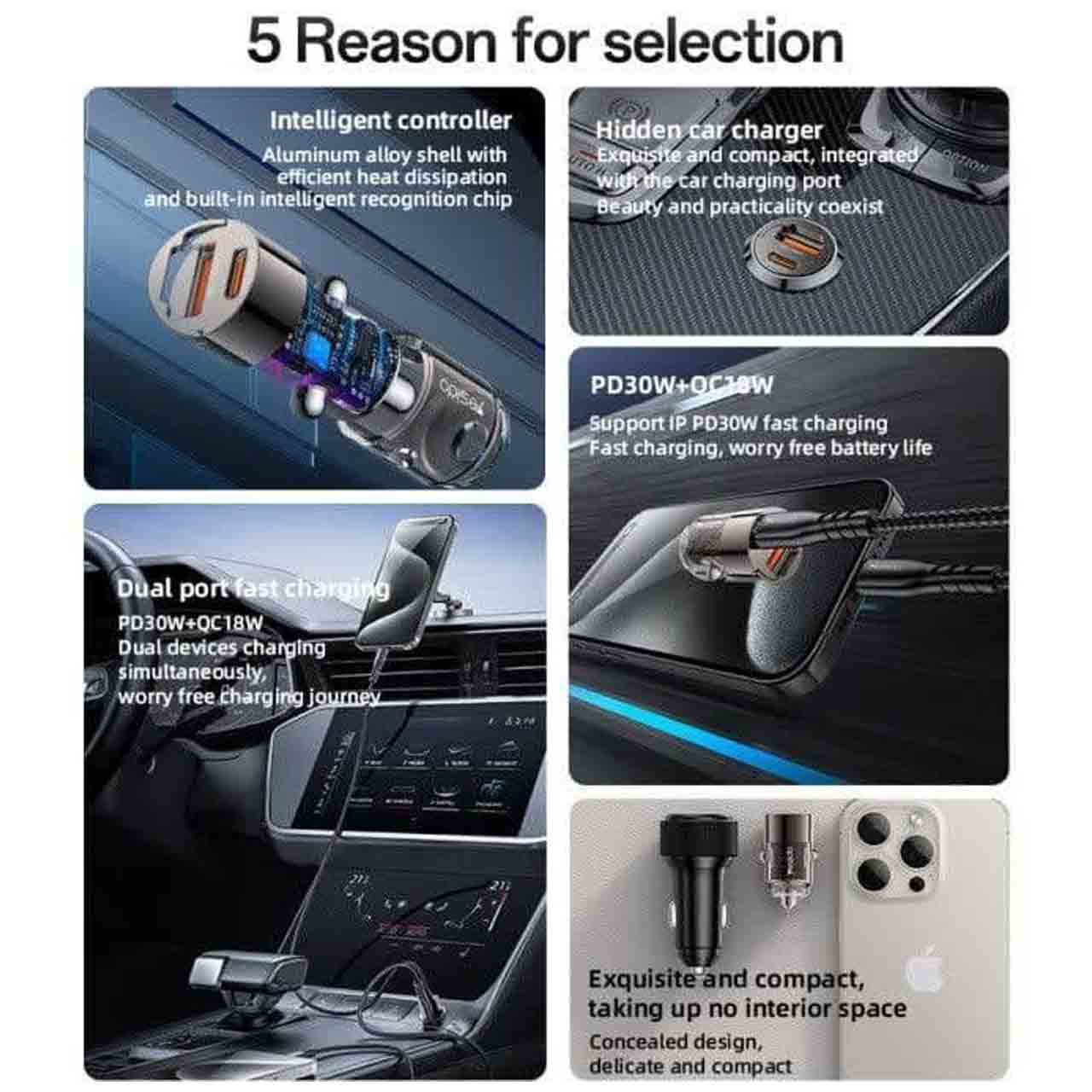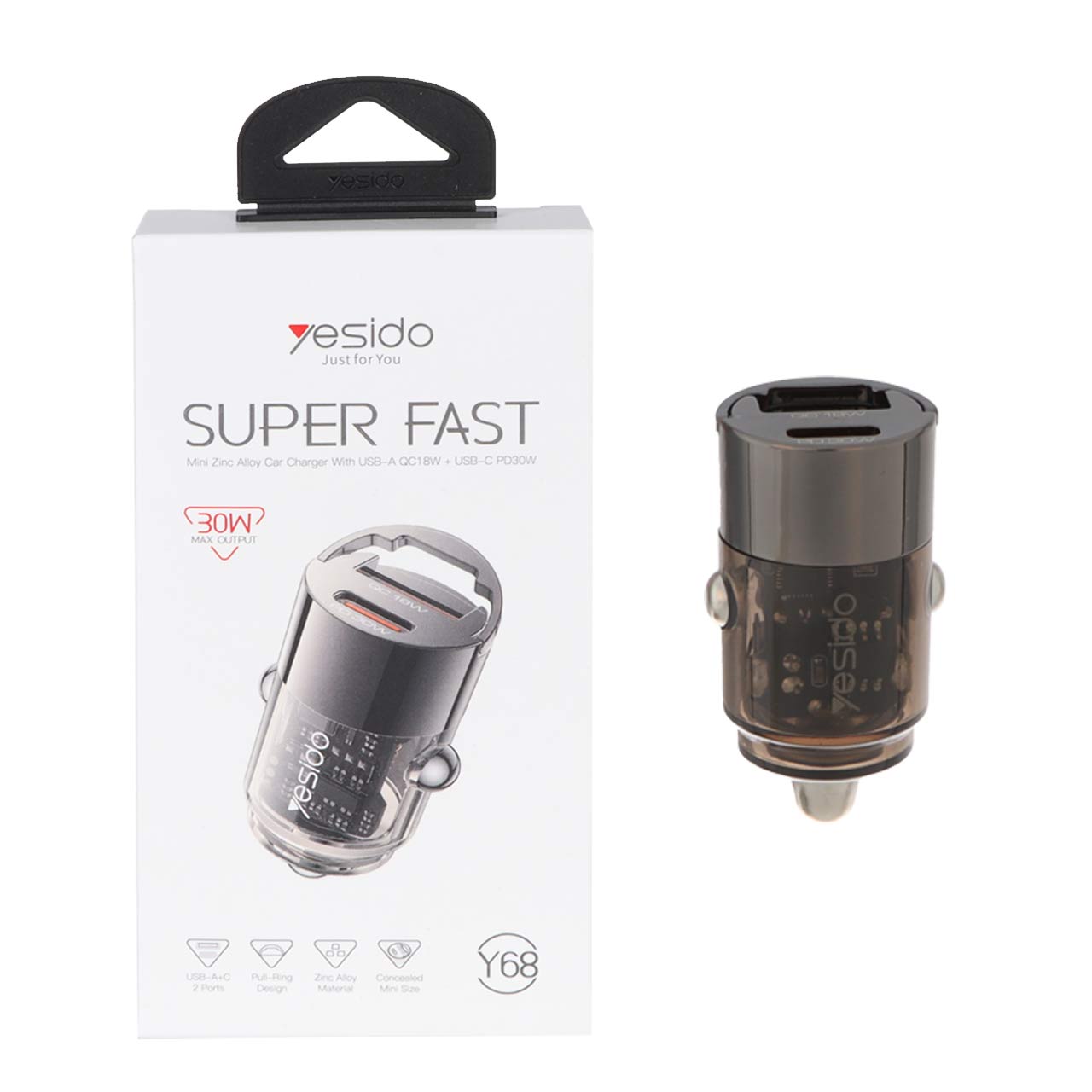 شارژر فندکی PD و فست دو پورت Yesido مدل Y68 30W - مشکی