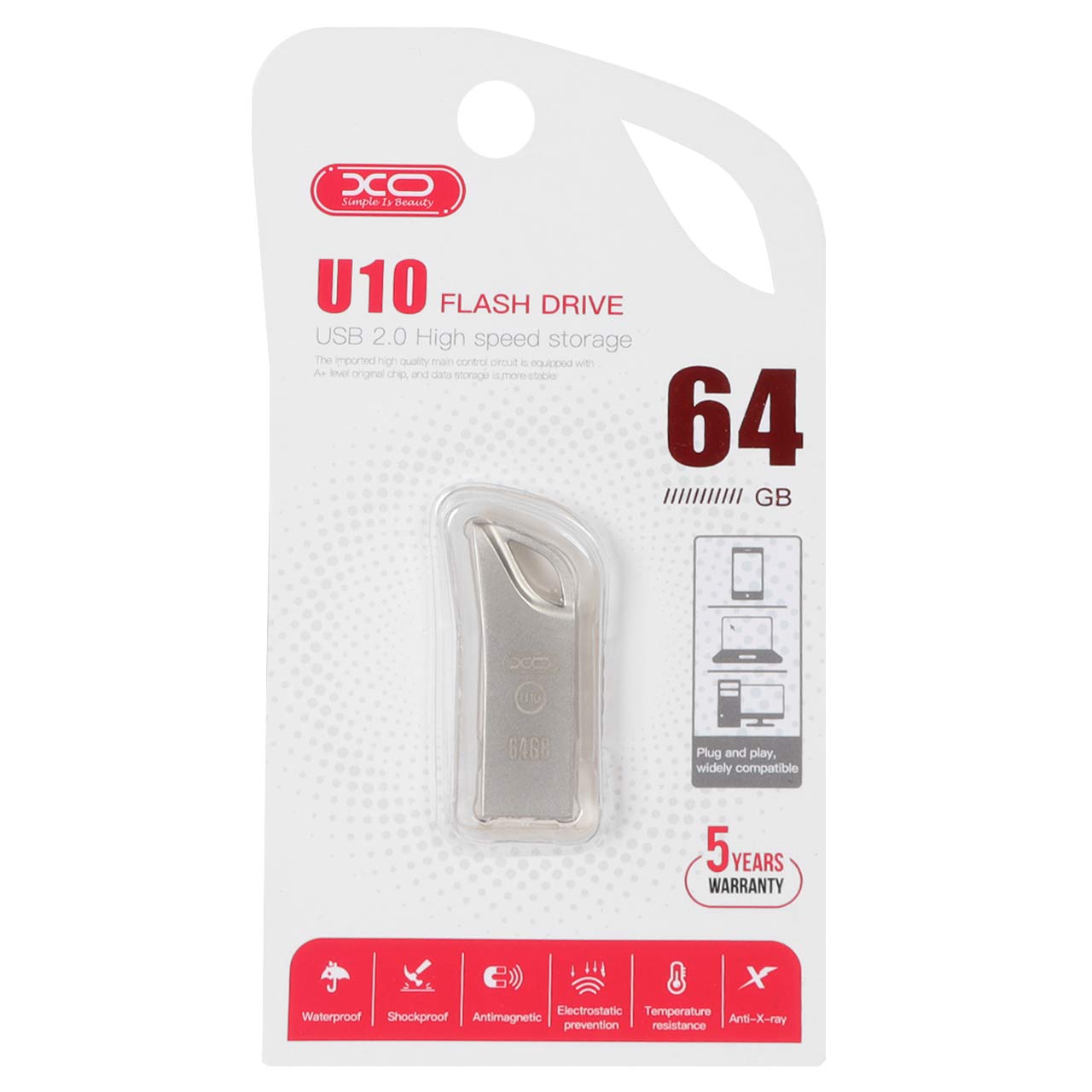 XO U10 USB 2.0 Flash Memory - 64GB - نقره ای