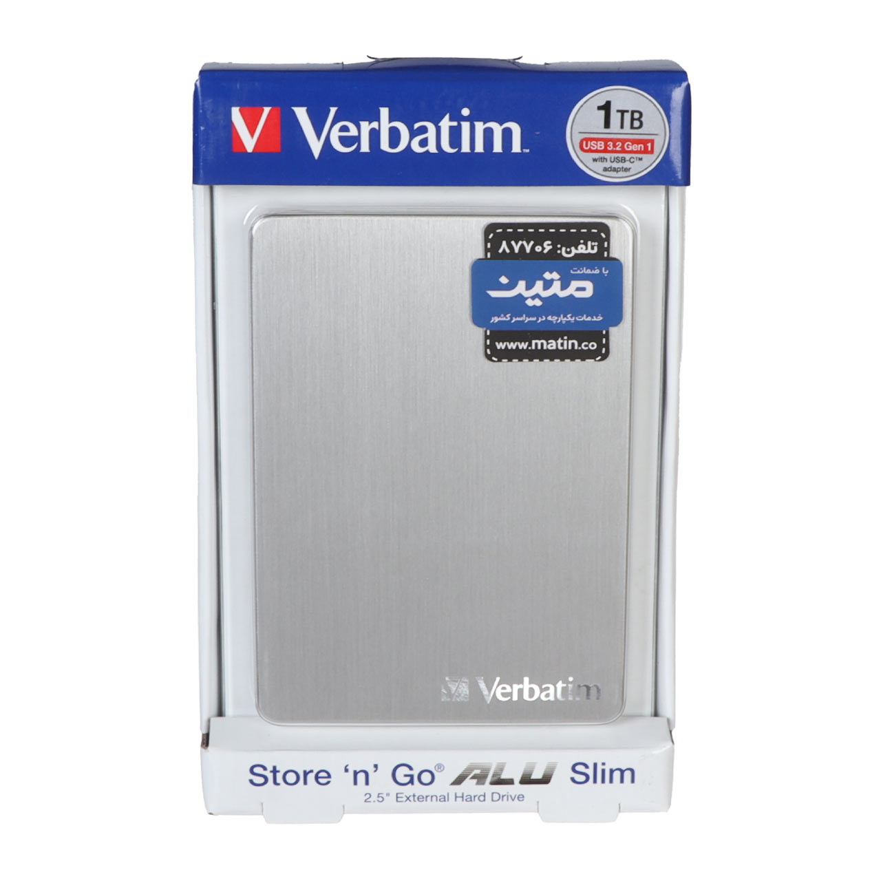 هارد اکسترنال Verbatim مدل Store ‘n’ Go ALU Slim USB3.2 ظرفیت 1TB - نقره ای (گارانتی متین)
