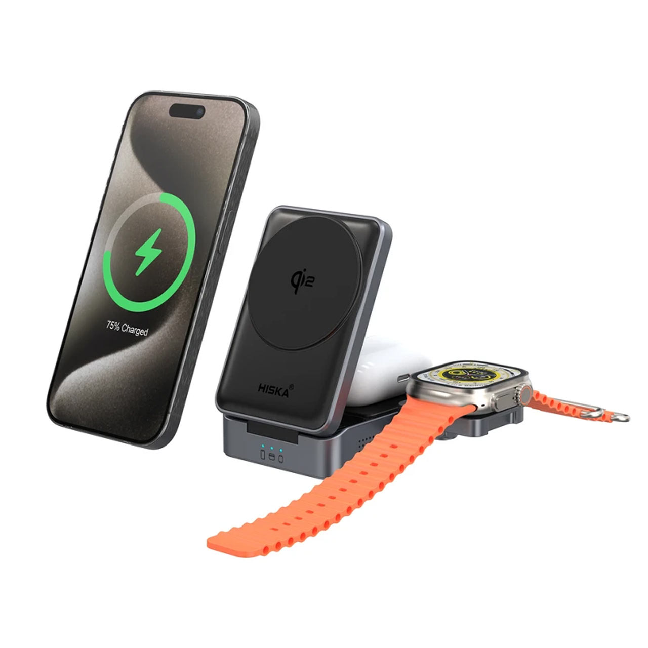 شارژر وایرلس سه کاره Hiska مدل HR-15 - مشکی (OPENBOX)