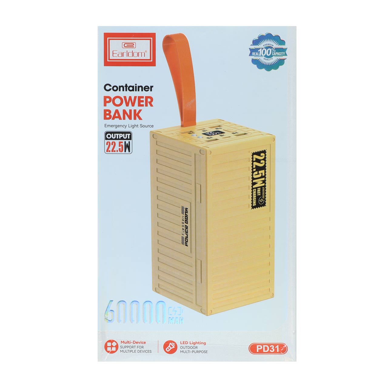 پاوربانک (PD و فست شارژ) Earldom 60000mAh مدل ET-PD31 22.5W - زرد