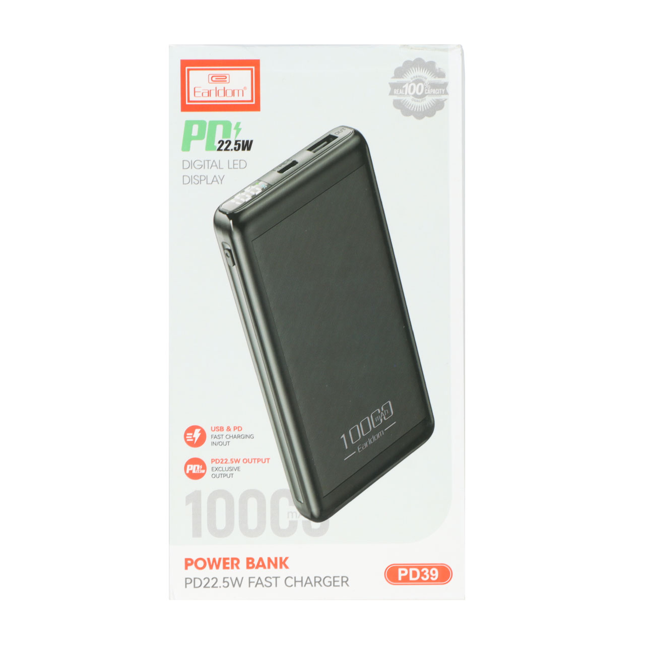 پاوربانک PD و فست شارژ Earldom 22.5W 10000mAh مدل ET-PD39 - مشکی (پک ضعیف)