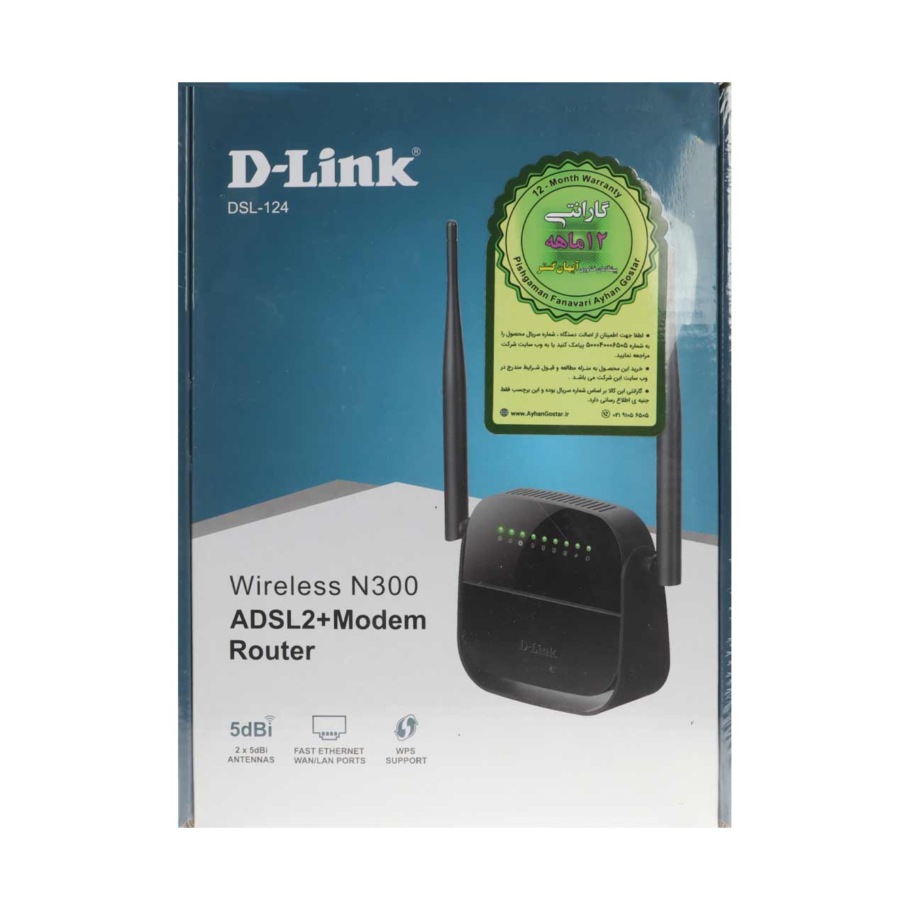 مودم D-link DSL-124 Wireless N300 ADSL2+ Modem Router - سفید ( 12 ماهه آیهان گستر)