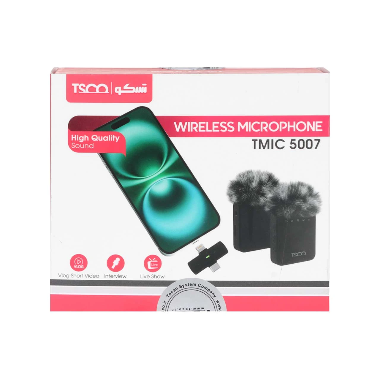 میکروفون بی سیم Tsco Type-C/Lightning مدل TMIC 5007 - مشکی (دو میکروفون) (گارانتی 12 ماهه TSCO)