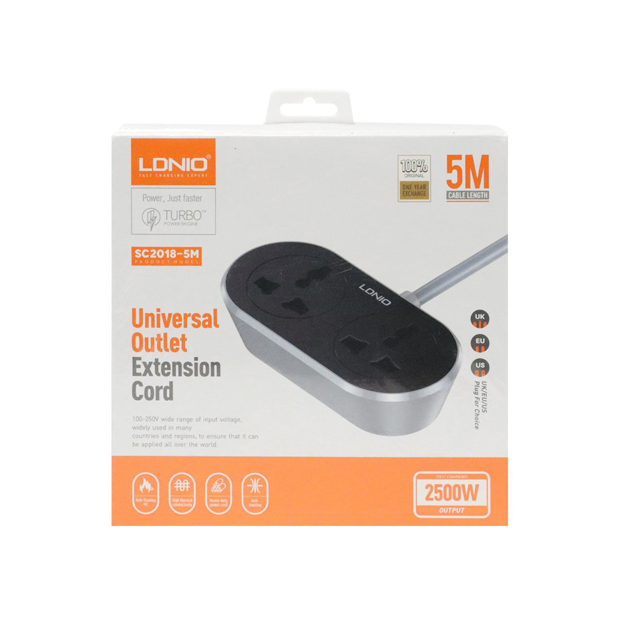 چندراهی برق 2 خانه LDNIO مدل SC2018-5M 2500W - خاکستری