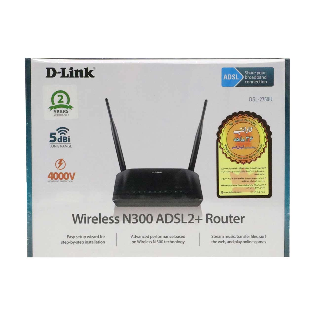 مودم D-link 2750u Wireless N 300 ADSL2+ Modem Router - مشکی ( 36 ماهه آیهان گستر)