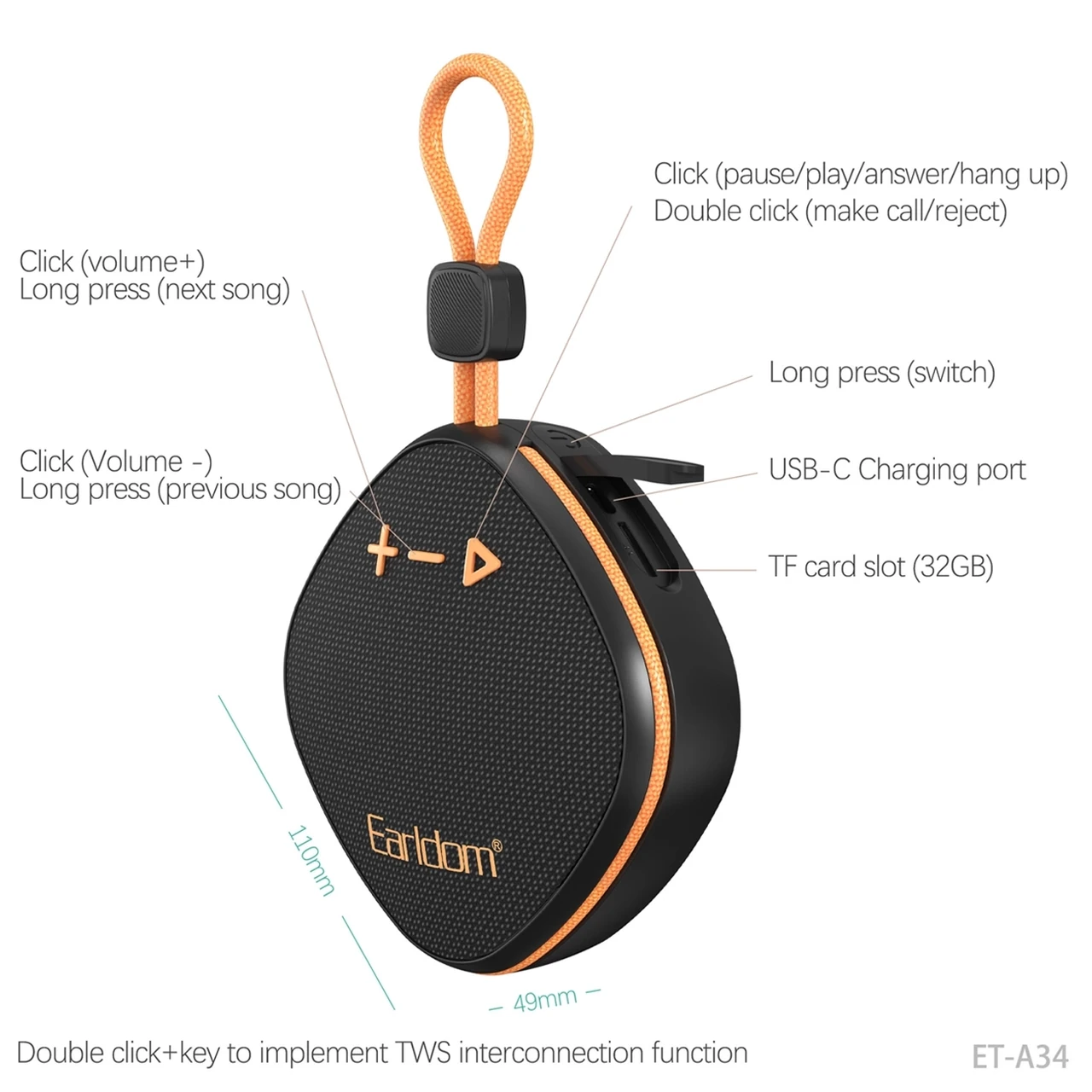اسپیکر پرتابل Earldom مدل ET-A34 - مشکی نارنجی