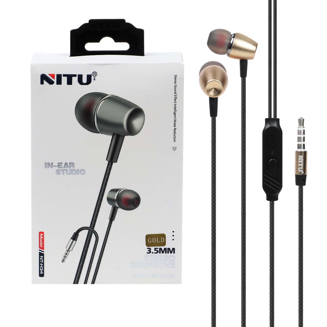 هندزفری با سیم NITU مدل H34 - مشکی طلایی