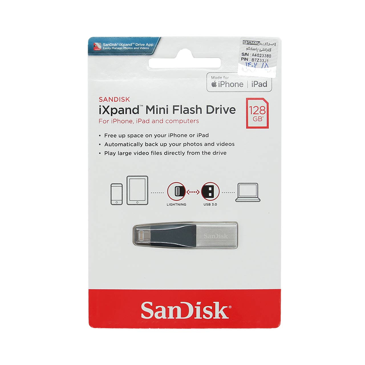 SanDisk iXPand Mini USB3.0 Flash Memory -128GB(گارانتی ایران رهجو)