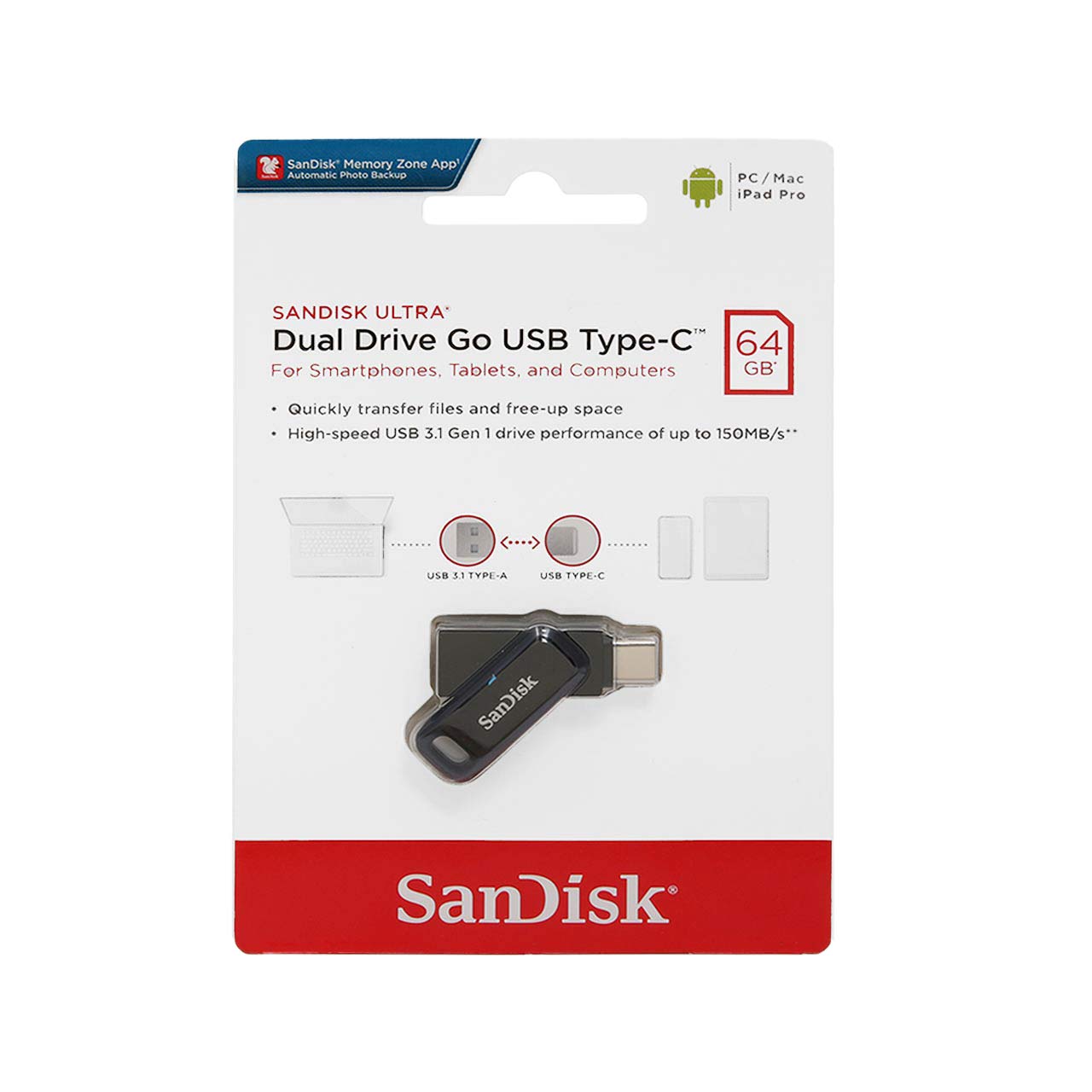 SanDisk Ultra Dual Drive Go USB Type-C USB3.0 Flash Memory-64GB (گارانتی سورین)