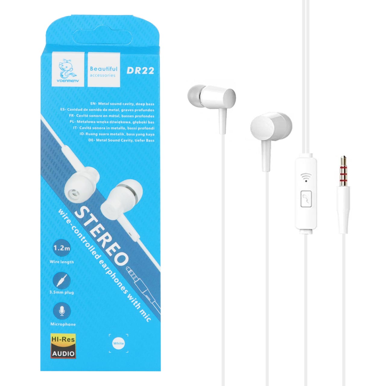 هندزفری با سیم DENMEN مدل DR22 - سفید (گارانتی دو ساله ایویز)