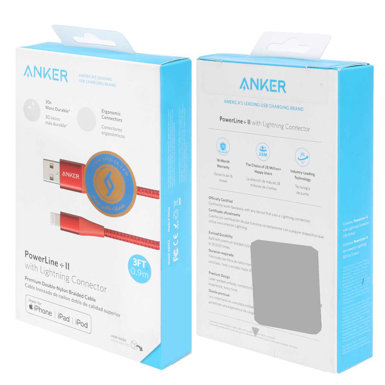 کابل شارژ 0.9 متری آیفون ANKER مدل PowerLine+II A8452 - قرمز (گارانتی 18ماهه حافظه طلایی ایستا)