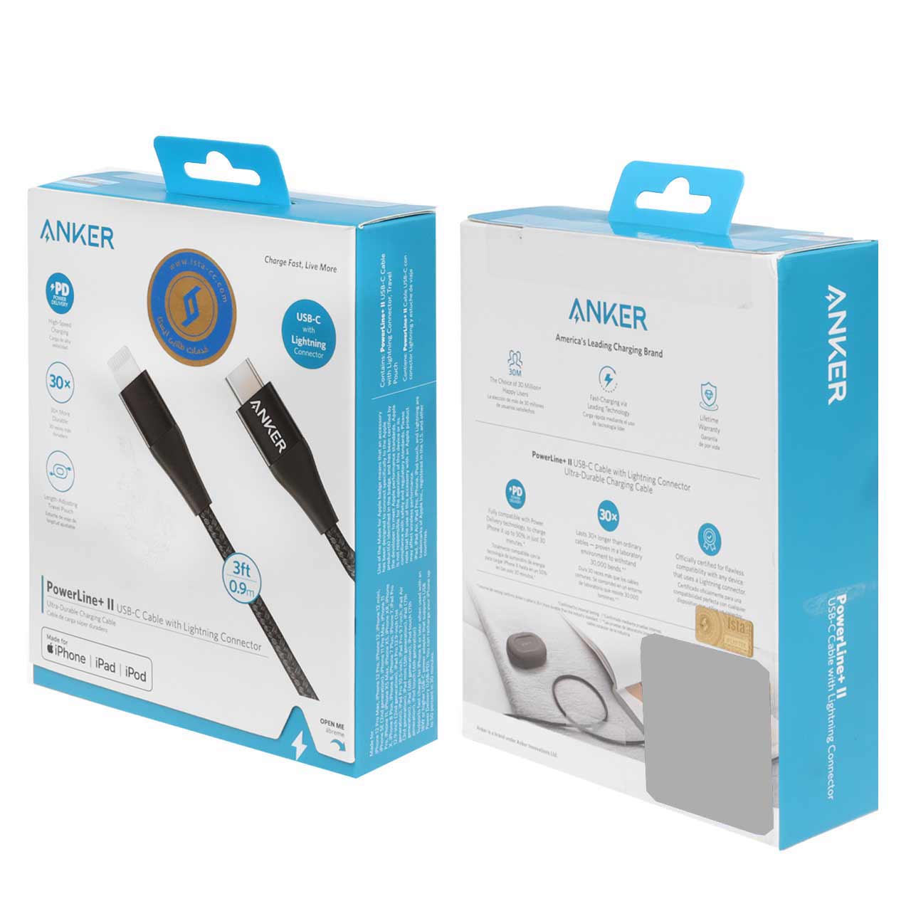 کابل شارژ و PD فست 0.9 متری ANKER Type-C to Lightning مدل PowerLine+II A8652 - مشکی (گارانتی 18ماهه حافظه طلایی ایستا)