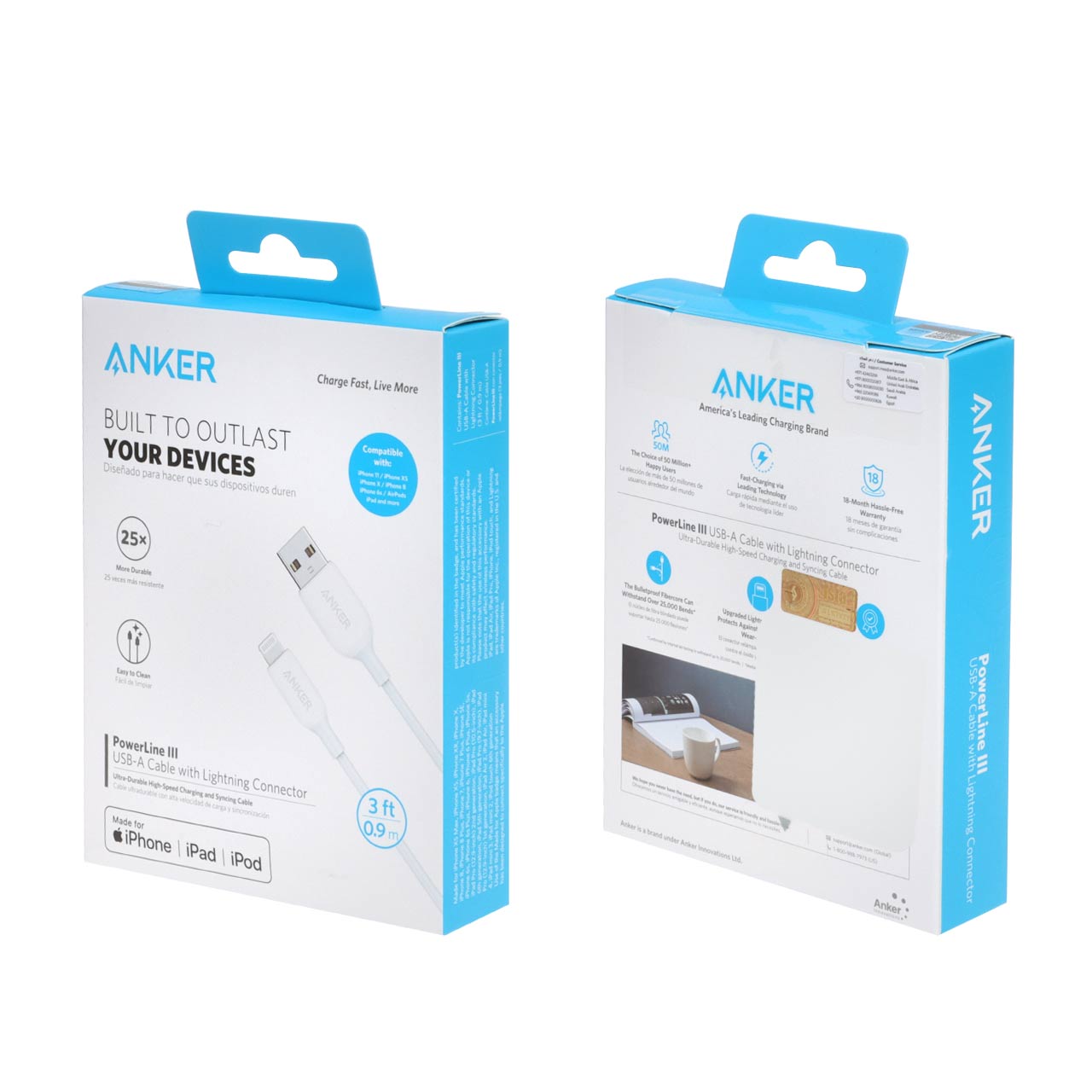 کابل شارژ 0.9 متری آیفون ANKER مدل PowerLineIII A8812 - سفید (گارانتی 18ماهه حافظه طلایی ایستا)