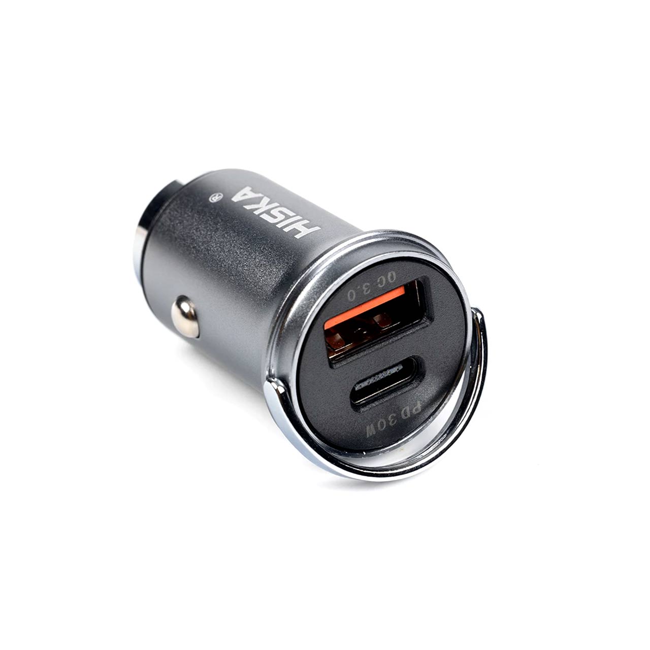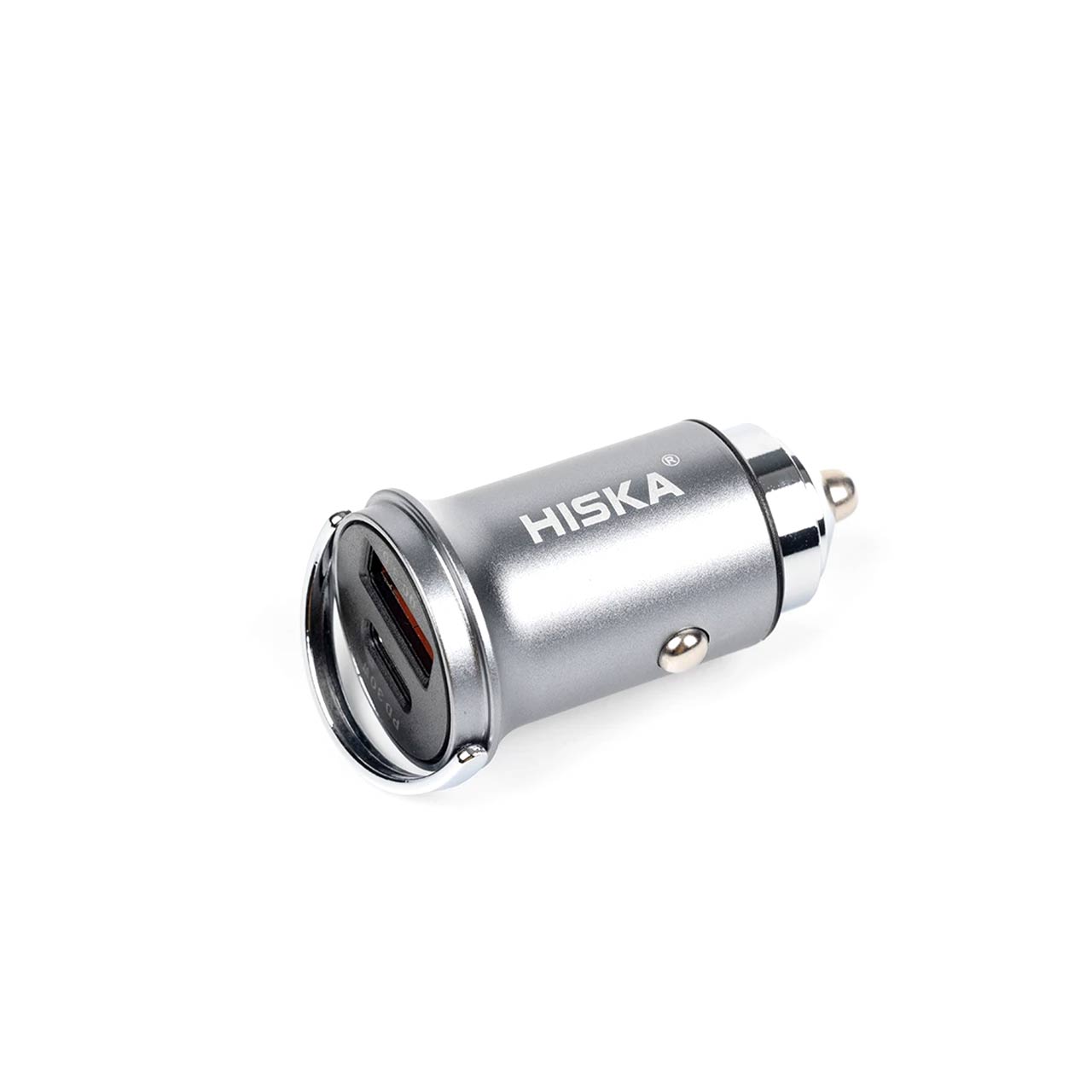 شارژر فندکی فست و PD دو پورت HISKA مدل HCC-306 30W به همراه کابل شارژ Type-C To Type-C - خاکستری