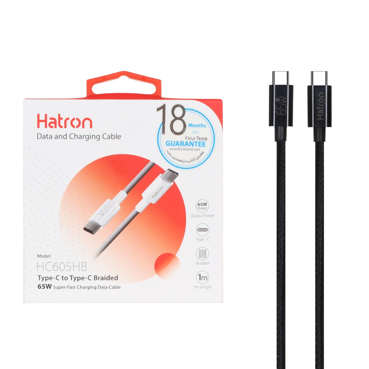 کابل شارژ فست Hatron Type-C To Type-C مدل HC605HB 65W - مشکی