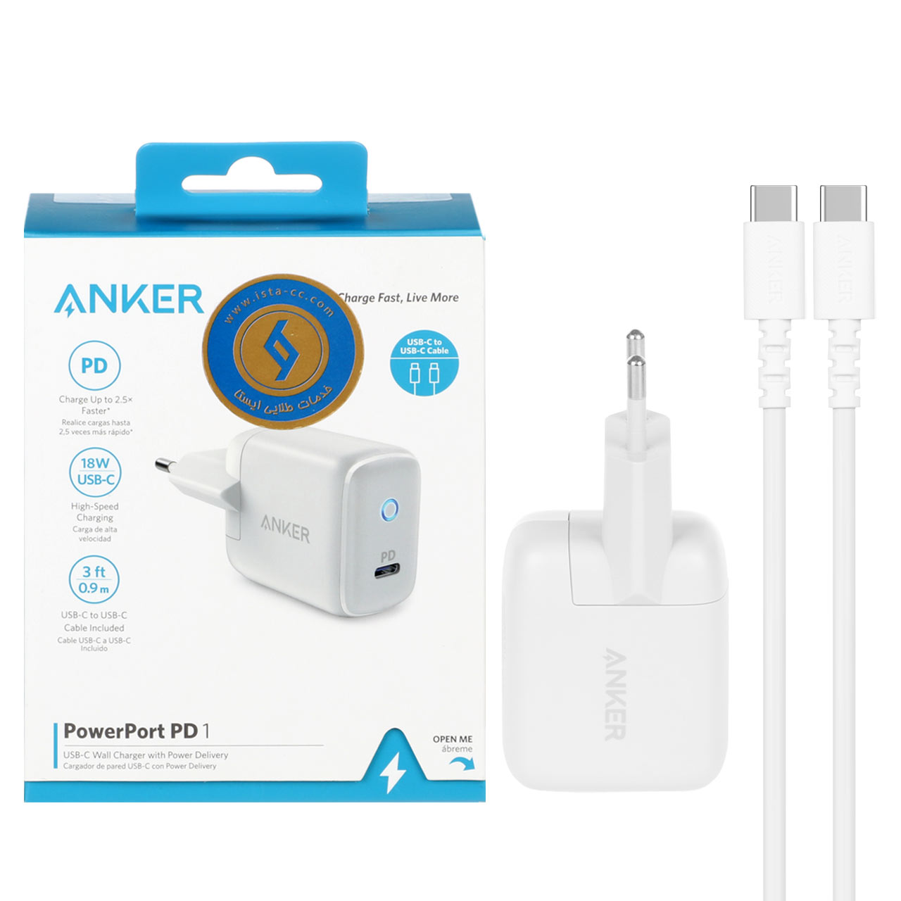 شارژر دیواری ANKER مدل B2019 با تکنولوژی PD 18W به همراه کابل شارژ TYPE-C - سفید