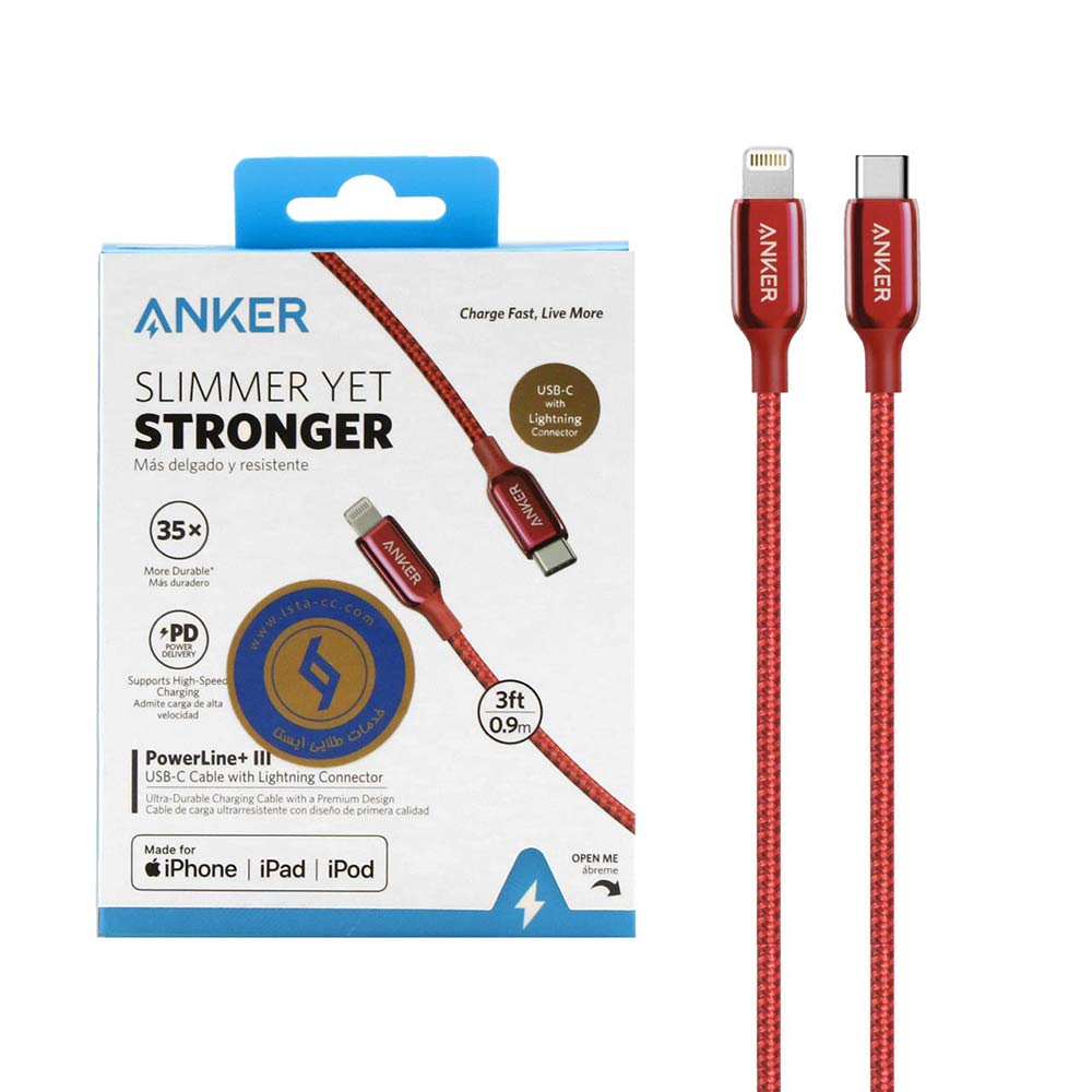 کابل شارژ PD و فست 0.9 متری ANKER Type-C to LIGHTNING مدل PowerLine+III A8842 - قرمز