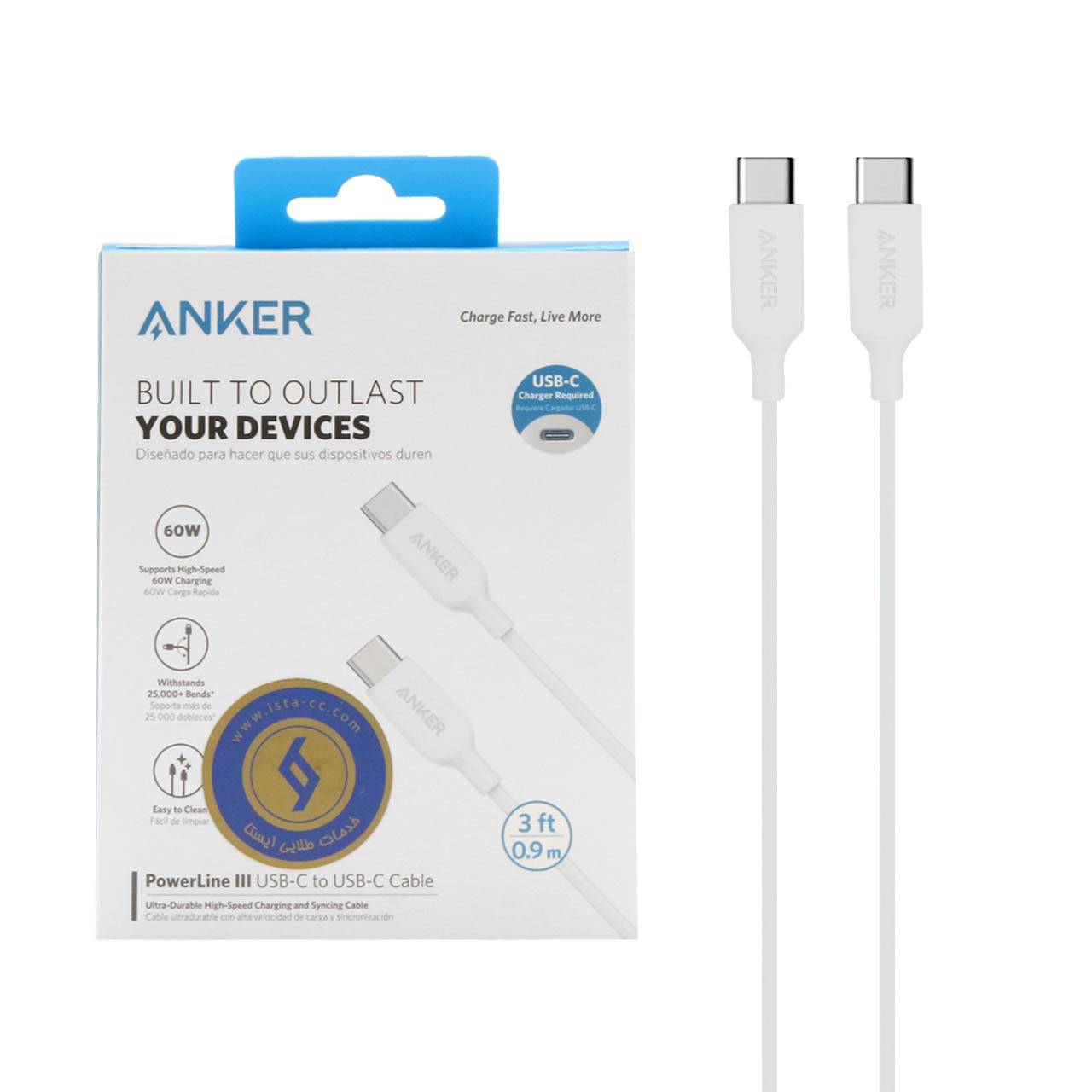 کابل شارژ فست 0.9 متری ANKER Type-C to Type-C مدل PowerLine III A8852 - سفید