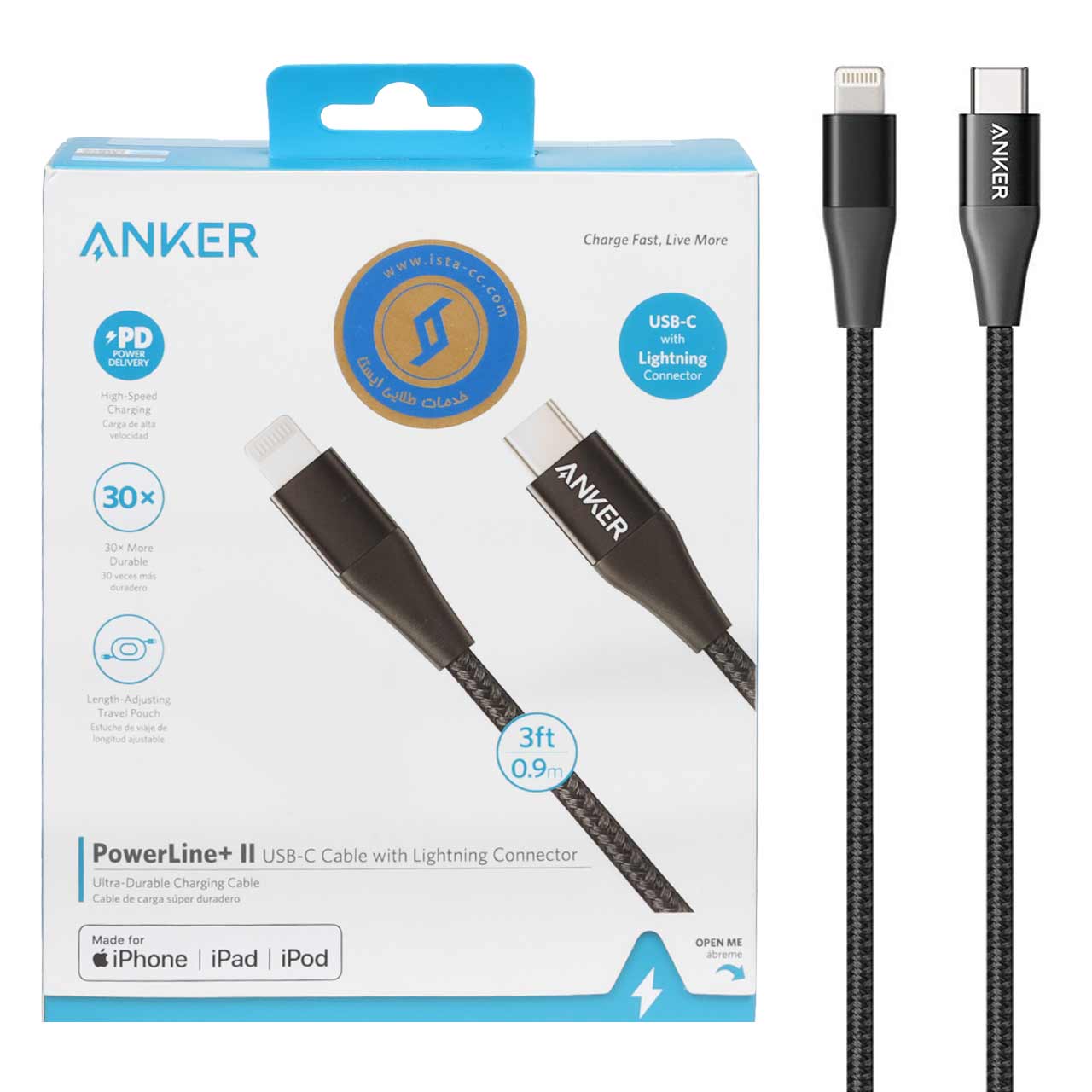 کابل شارژ و PD فست 0.9 متری ANKER Type-C to Lightning مدل PowerLine+II A8652 - مشکی (گارانتی 18ماهه حافظه طلایی ایستا)
