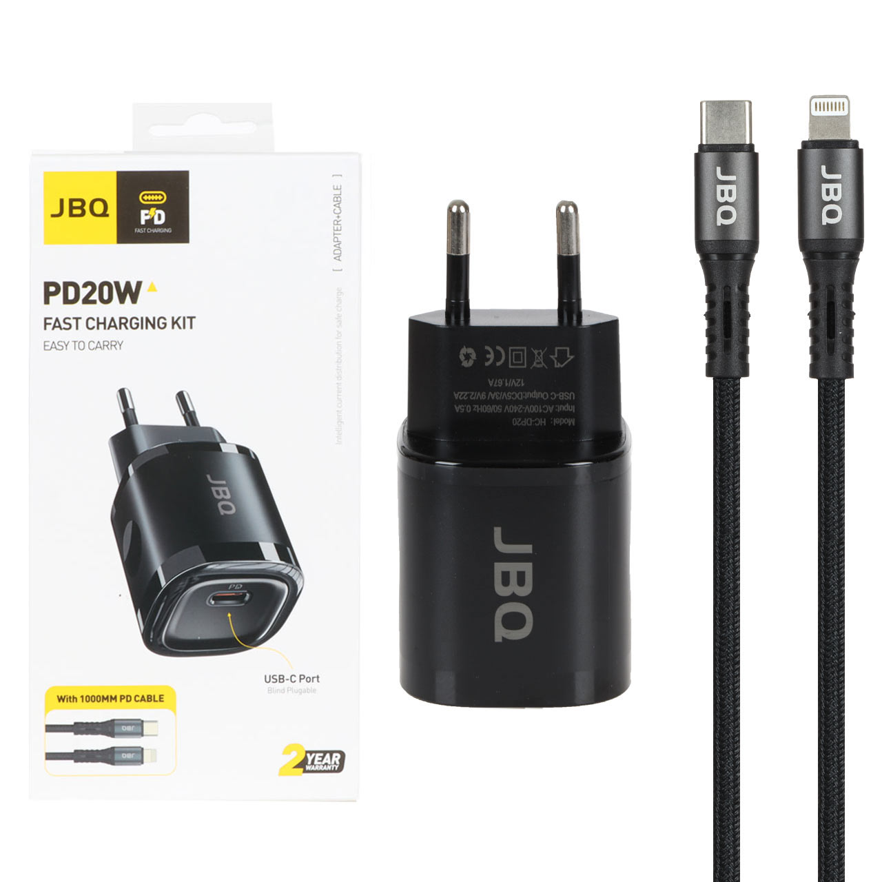 شارژر دیواری فست و PD تک پورت JBQ مدل HC-DP20 20W همراه با کابل Type-C to Lightning - مشکی