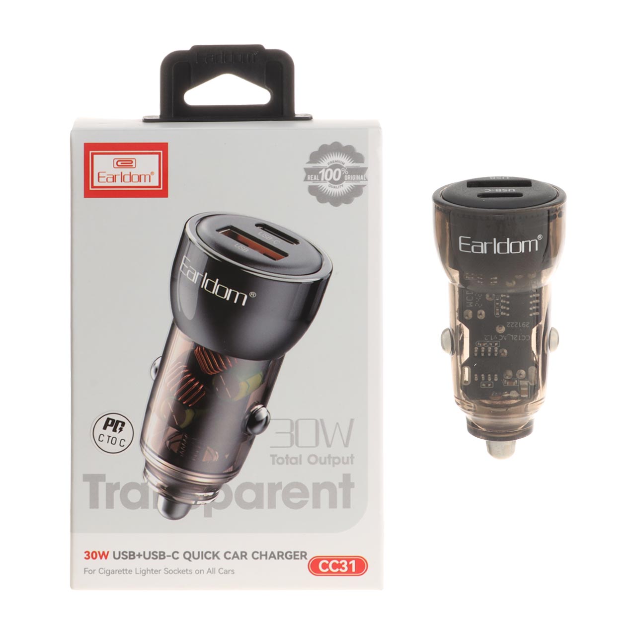شارژر فندکی PD و فست دو پورت Earldom مدل CC31 به همراه کابل شارژ Type-C To Type-C - مشکی