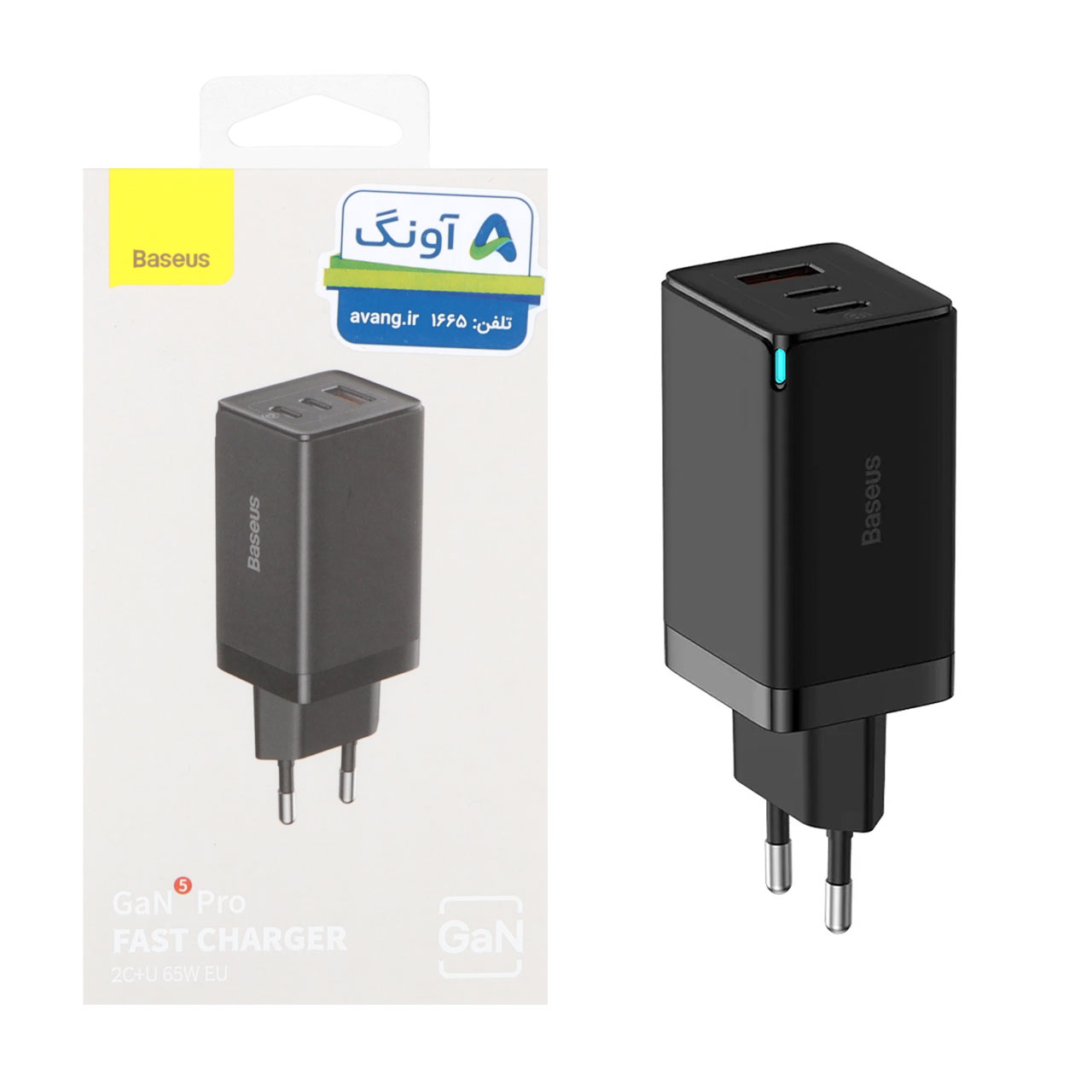 شارژر دیواری PD و فست سه پورت Baseus مدل Gan Pro 65W CCGAN65E5 - مشکی (گارانتی آونگ)