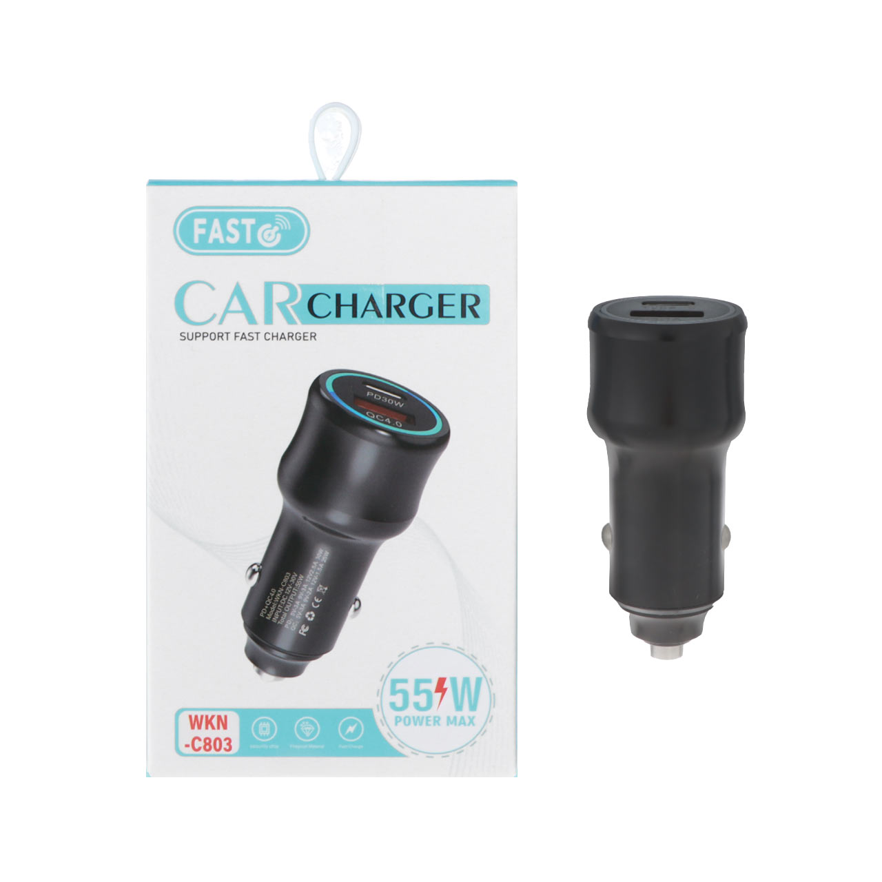 شارژر فندکی فست و PD دو پورت FAST مدل WKN-C803 55W - مشکی - RYL