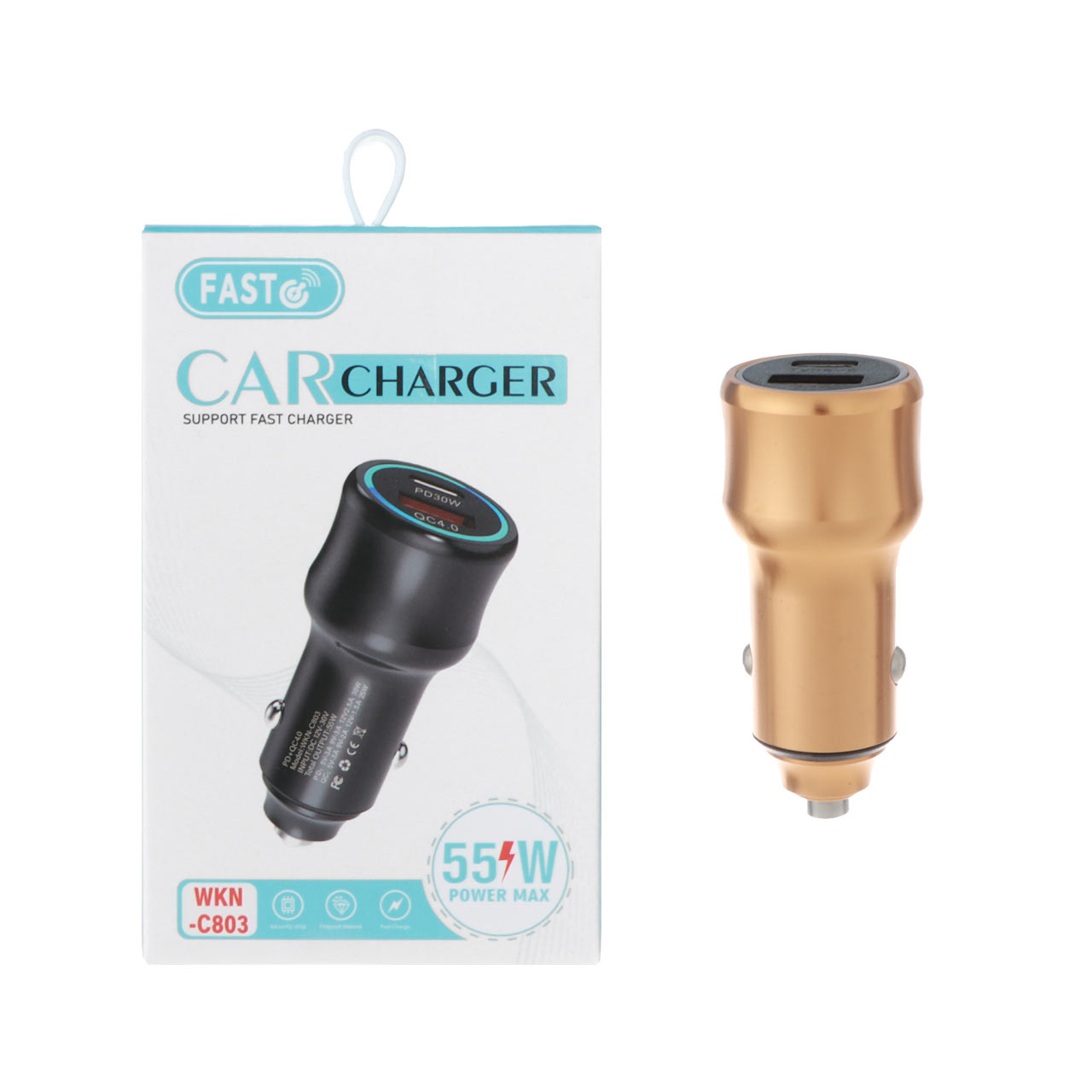 شارژر فندکی فست و PD دو پورت FAST مدل WKN-C803 55W - طلایی - RYL