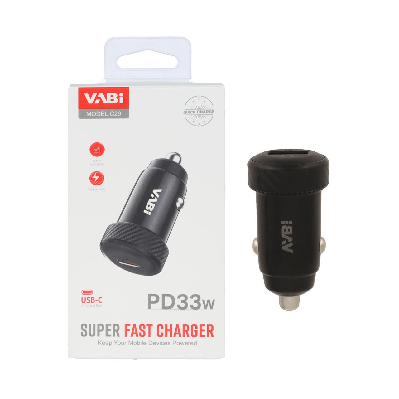 شارژر فندکی PD و فست تک پورت VABI مدل C29 33W به همراه کابل شارژ Type-C - مشکی