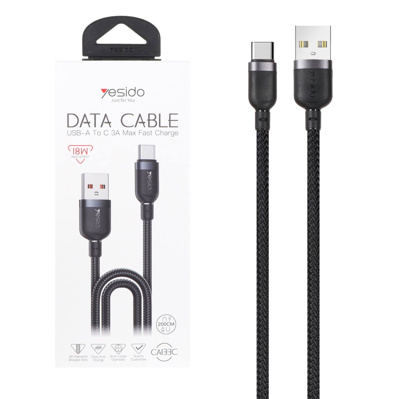 کابل شارژ فست 2 متری Yesido Type-C مدل CA133C 18W - مشکی