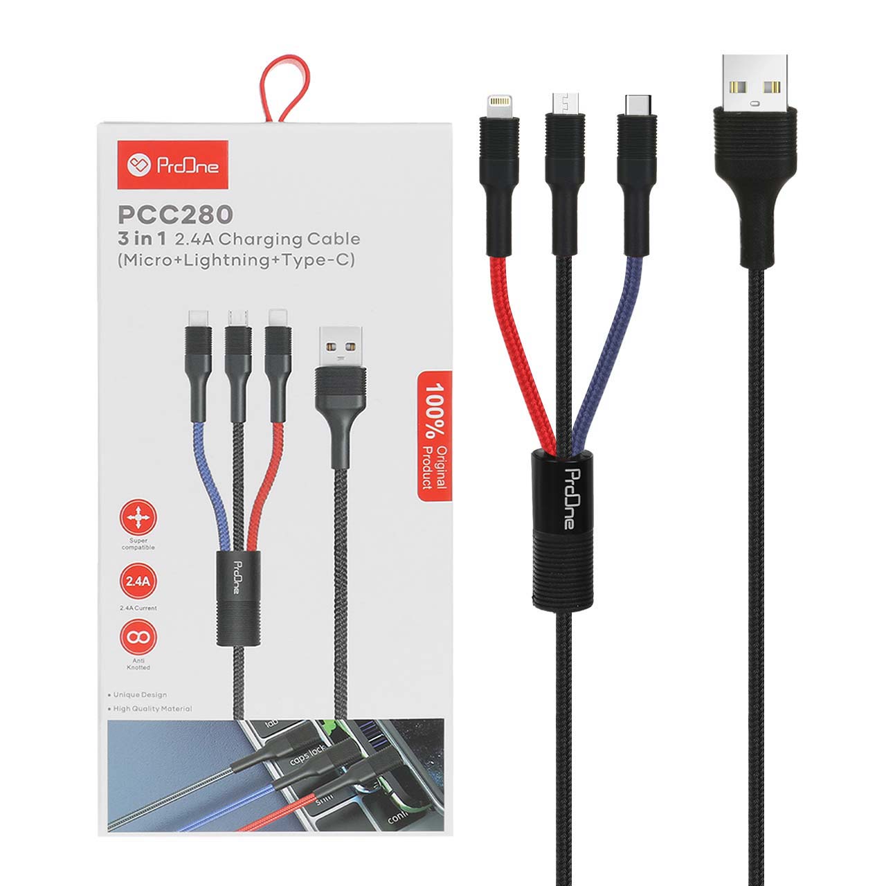 کابل شارژ تبدیل USB به Type-C / MicroUSB / لایتنینگ ProOne مدل PCC280-مشکی