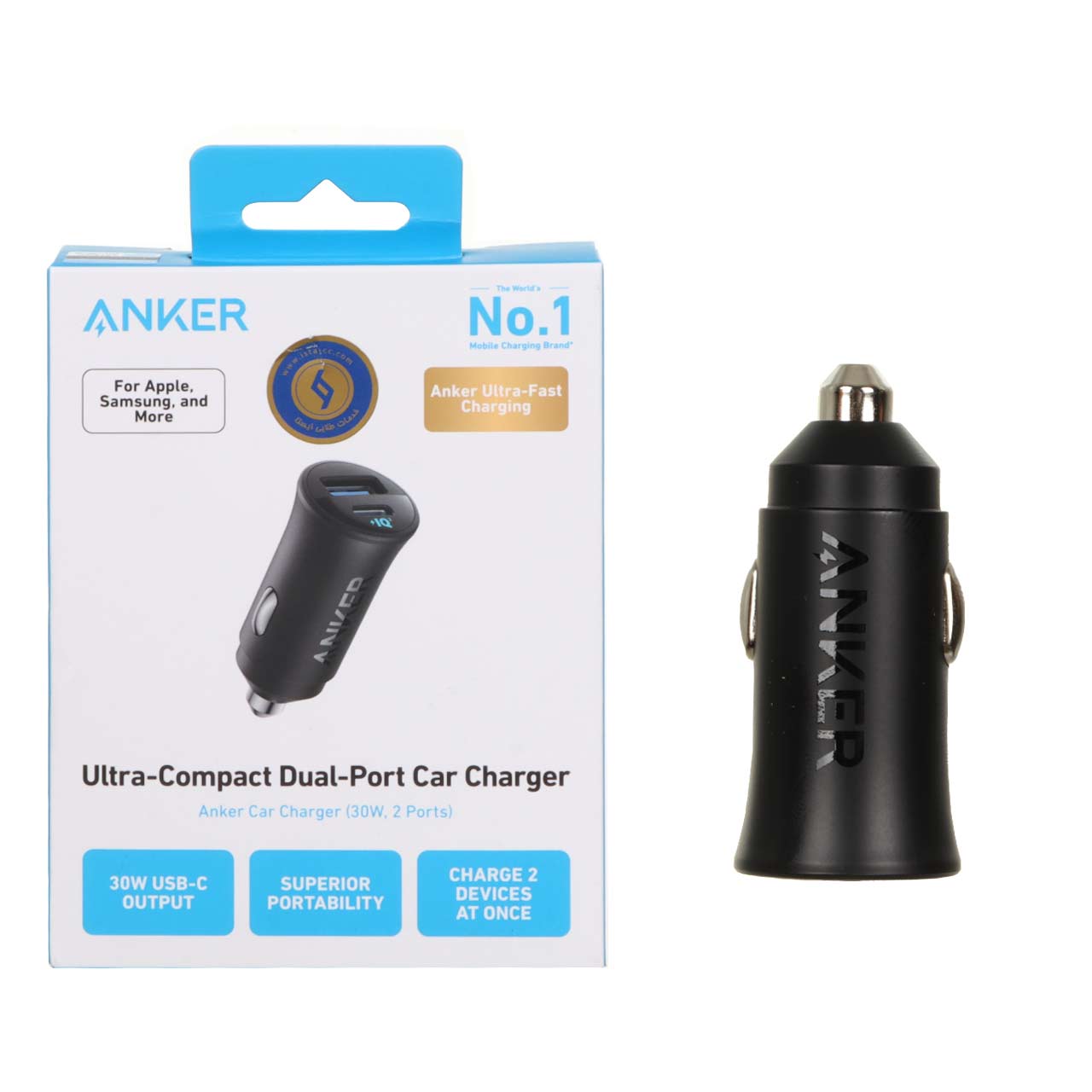 شارژر فندکی فست دو پورت ANKER مدل A2741 با توان 30W - مشکی (گارانتی 18ماهه حافظه طلایی ایستا)